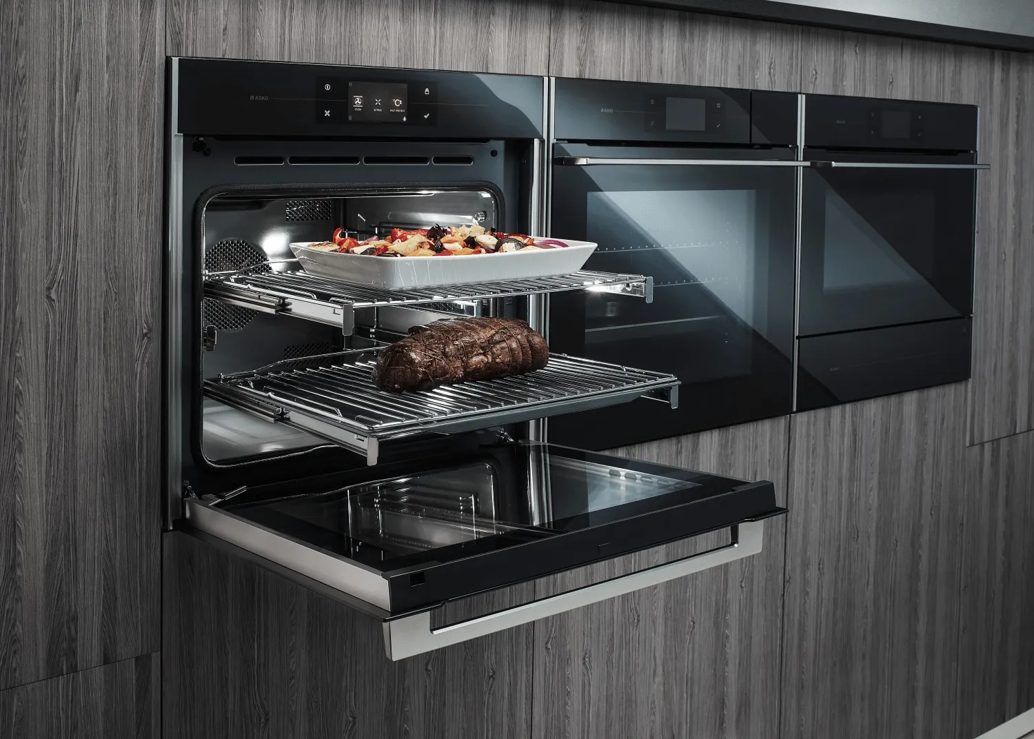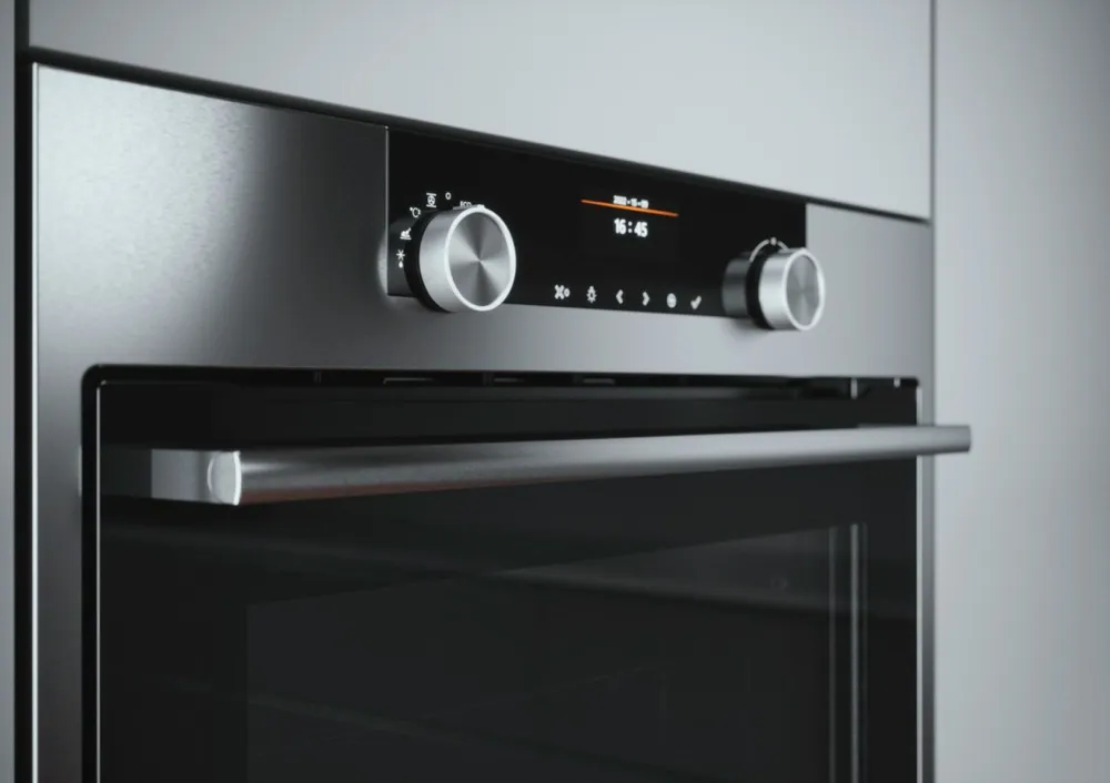 На фронтальной панели расположен сенсорный TFT-дисплей с продуманной навигацией, дополненный поворотными регуляторами и кнопками с подсветкой. Система 5 Air Flow оптимально распределяет горячий воздух по всей камере, исключая перепады температуры. Очистка AquaClean облегчает уход за духовкой — горячий пар за 30 минут размягчает загрязнения, которые легко удалить мягкой тканью. Максимальная температура нагрева достигает 275 °C, что идеально подходит для запекания, гриля и выпечки.