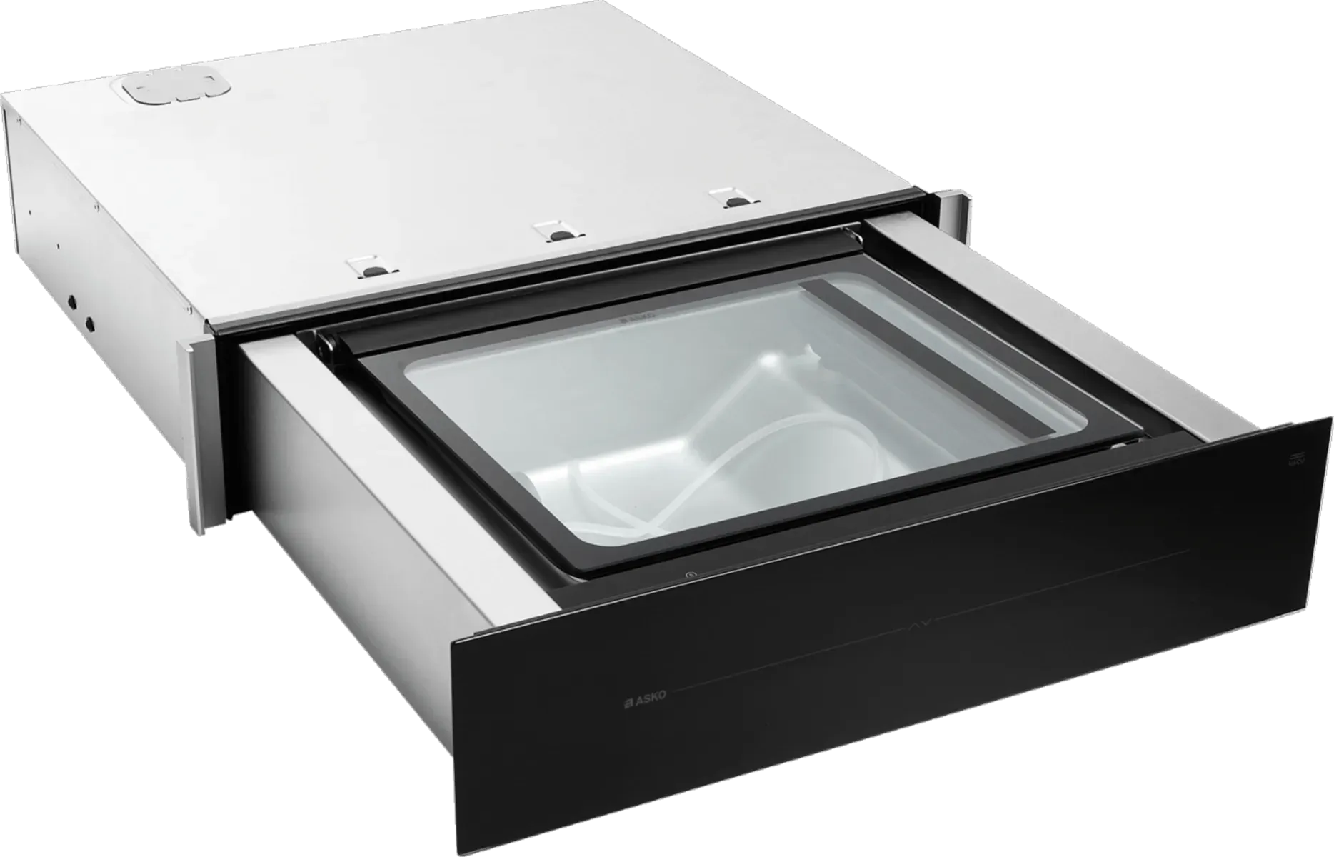 Фасад выполнен из чёрного закалённого стекла, что придаёт технике современный вид и делает её отличным дополнением к другой бытовой технике Asko. Вакууматор оснащён удобным индикатором на фронтальной панели, позволяющим отслеживать процесс работы. Инновационный нажимной механизм push2Open исключает необходимость в ручке — прибор открывается лёгким нажатием на фасад, даже локтем, что делает использование максимально удобным и безопасным.