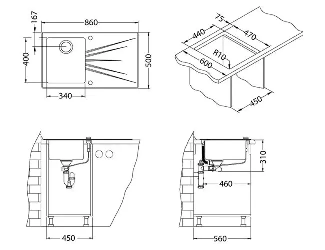 Отсутствие проделанных заранее отверстий в мойке делают ее более универсальной. Вы можете установить смеситель, дозатор, кран ля питьевой воды именно там, где Вам это удобно. Сделать отверстие в мойке можно с помощью обычного домашнего инструмента, и не требует профессиональных навыков.