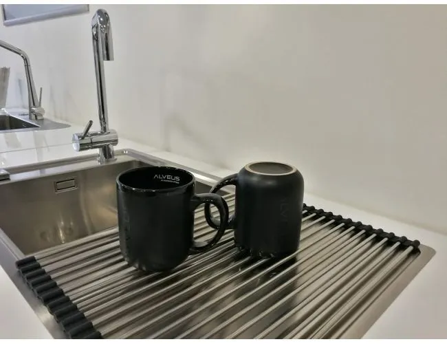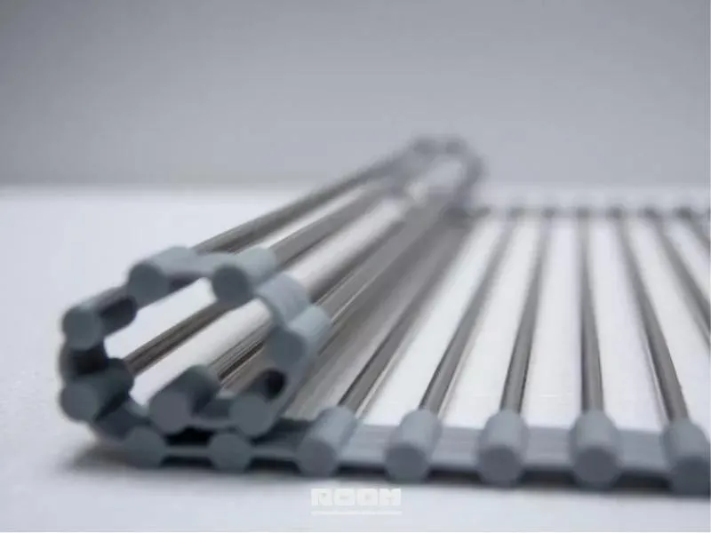 Удобная и компактная сушилка для посуды. Конструкция ролл-мата позволяет использовать его как на столешнице так и непосредственно на кухонной мйке. Ролл-мат ALL ROUND сделан из безопасных материалов : нержавеющей стали и силикона, поэтому подходит как для посуды, так и для продуктов. Легко устанавливается, подходит для моек разных размеров. При необходимости легко сворачивается в небольшой рулон, не занимает много места на кухне. Выдерживает температуру до 200 градусов.