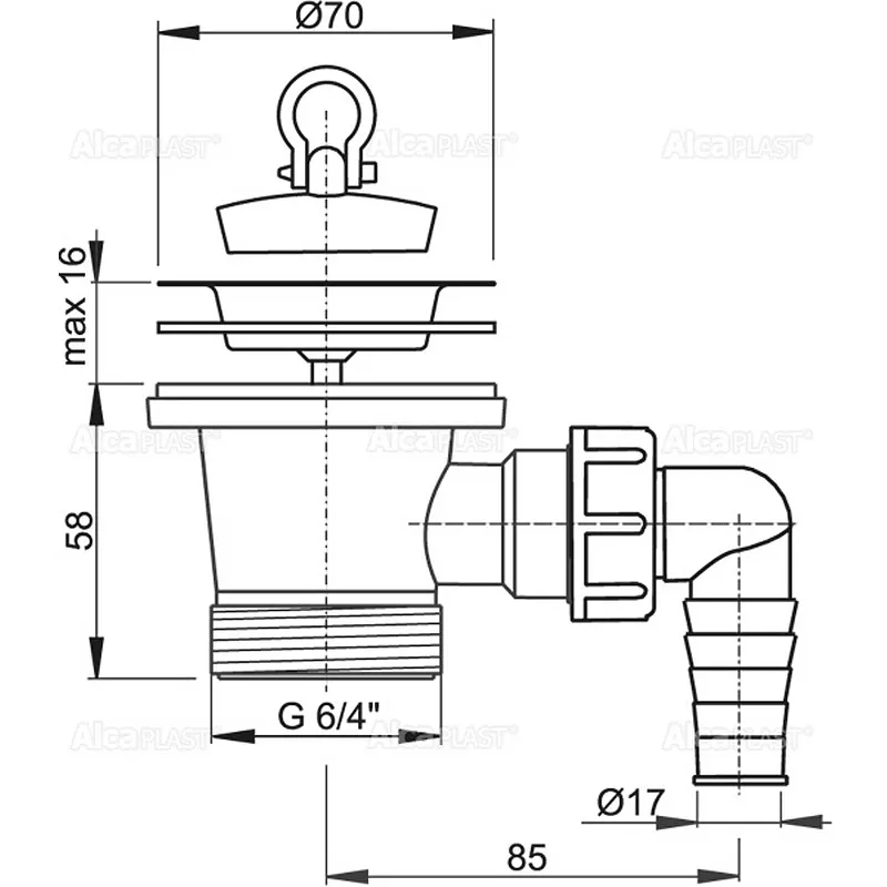 Выпуск для кухонной мойки Alcaplast A33P Нержавеющая сталь