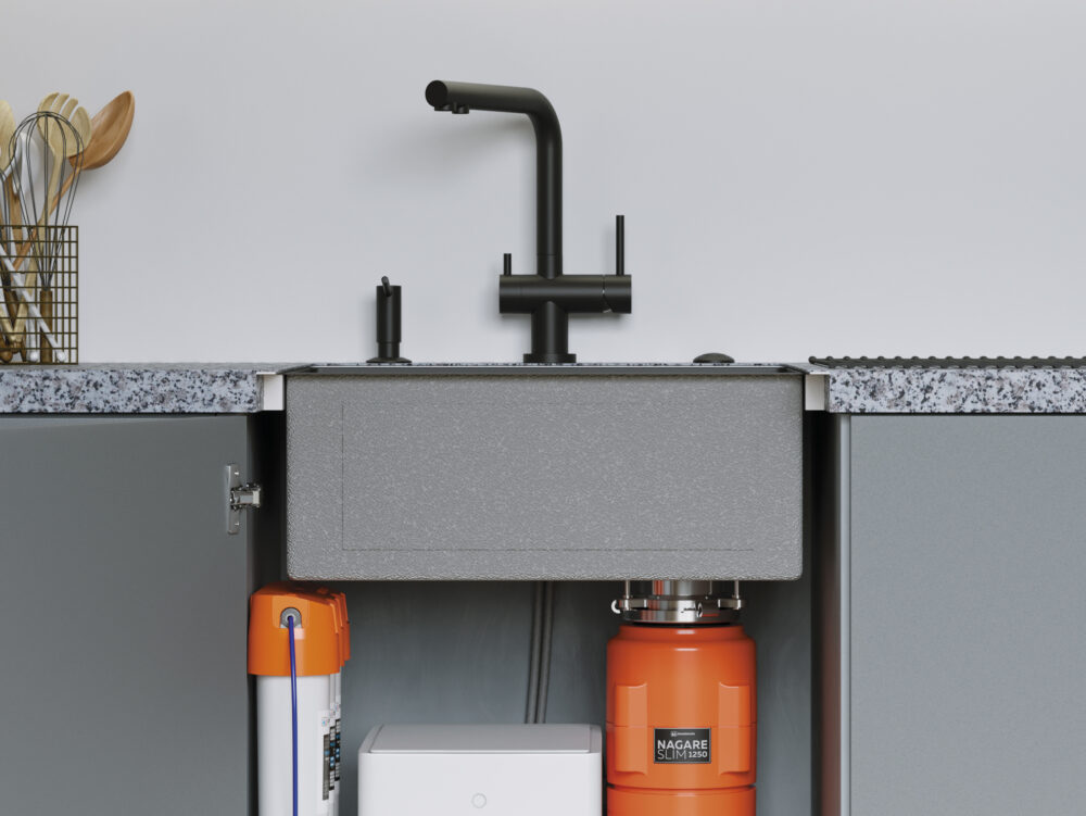 В комплекте с измельчителем идет пневматическая кнопка в цвете нержавеющая сталь (BN)..