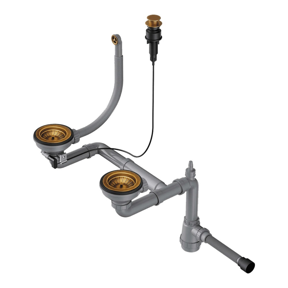 Арматура с клапаном-автоматом для полуторачашевых моек с круглым переливом.
