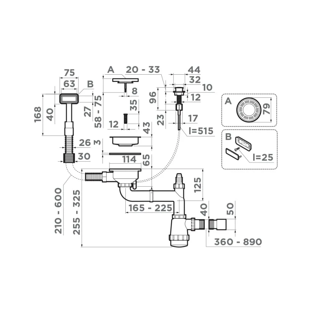 Сифон для мойки Omoikiri WK-2-A-IN нержавеющая сталь 4956484 Сифон для мойки Omoikiri WK-2-A-IN нержавеющая сталь 4956484