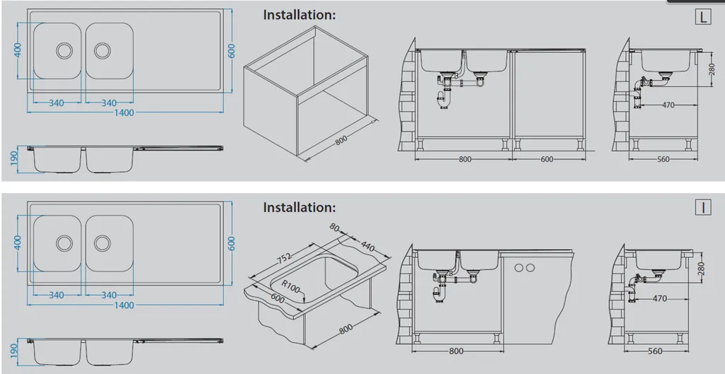 Оборачиваемая мойка - универсальная мойка с крылом, которую в заивисимости от особенностей конкректной кухни можно развернуть в любую сторону, чаша может быть как слева, так и справа