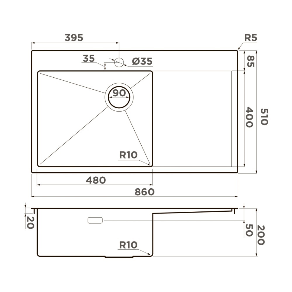 Кухонные мойки OMOIKIRI изготовлены из высококачественной хромоникелевой нержавеющей стали SUS304. Она содержит 18% хрома и 8% никеля, что обеспечивает ее максимальную защиту от коррозии. Самый важный показатель у мойки из нержавеющей стали – толщина стали, ведь чем она толще, тем более твердой, надежной и долговечной будет мойка. Для качественной мойки лучше выбирать толщину выше 0,6 мм. Мойки бренда OMOIKIRI имеют толщину от 0,7 до 1,2 мм.