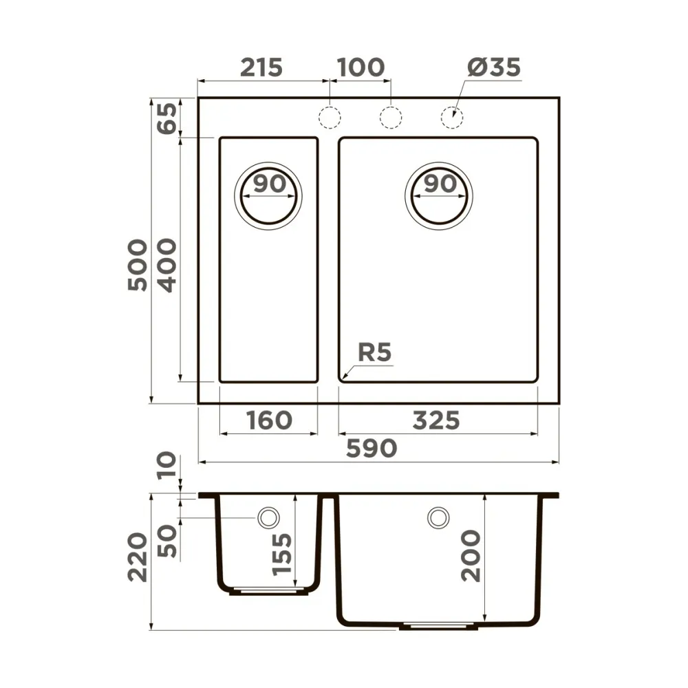 Мойка кухонная Omoikiri Bosen 59-2A-GB графит 4993821