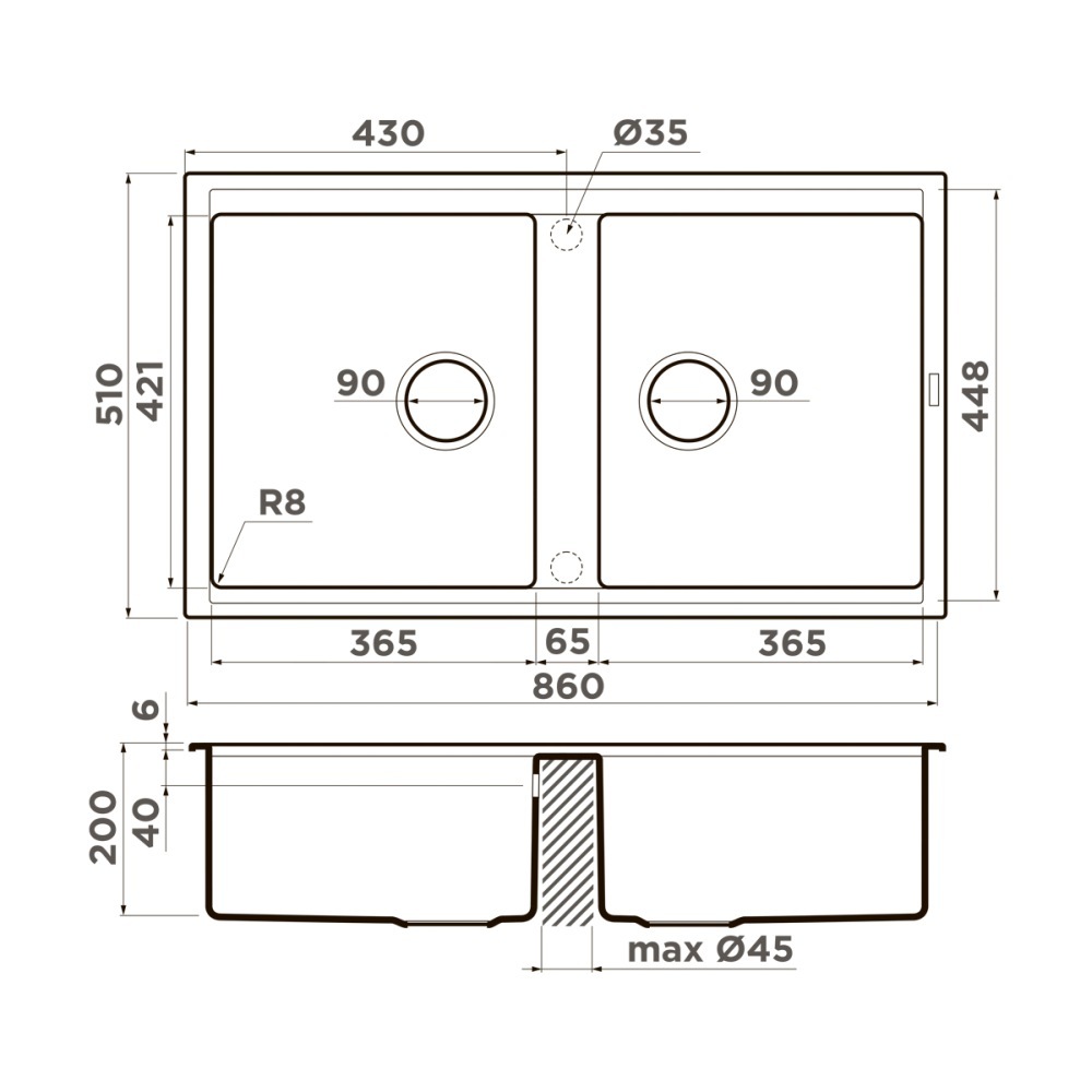 Равномерный состав материала обеспечивает устойчивость к ударам, поэтому в мойках из Artceramic нет уязвимых мест, которые больше других подвержены механическим повреждениям.