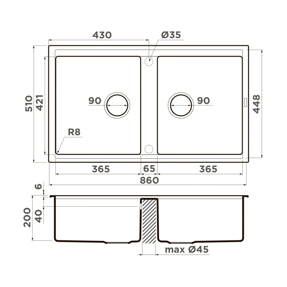 Равномерный состав материала обеспечивает устойчивость к ударам, поэтому в мойках из Artceramic нет уязвимых мест, которые больше других подвержены механическим повреждениям.