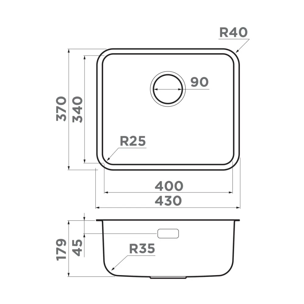 Горизонтальная ширина чаши у Omi Ultra Mini составляет 370 мм, в то время как стандартная горизонтальная ширина у остальных моек Omi - от 400 мм. Именно эти 30 мм позволяют получить больше свободного пространства между мойкой и стеной. Также это упростит задачу при проектировании монтажа мойки и смесителя с профильной ручкой Gola.