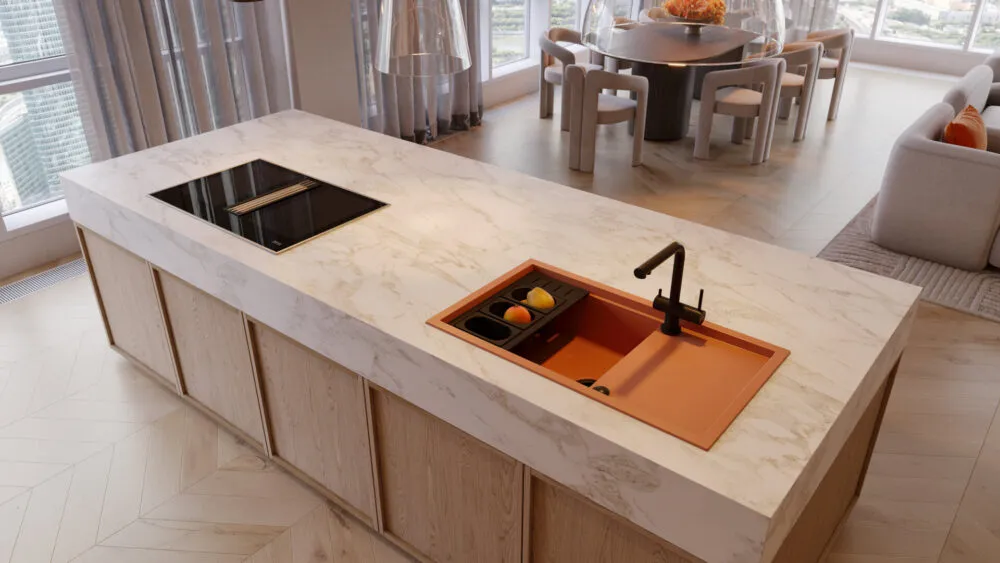 Равномерный состав материала обеспечивает устойчивость к ударам, поэтому в мойках из Artceramic нет уязвимых мест, которые больше других подвержены механическим повреждениям.