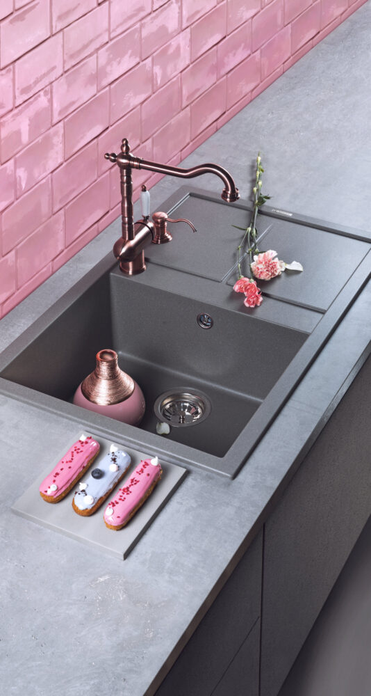 Мойки из Tetogranit устойчивы к механическим повреждениям. Кварцевый песок в составе мойки имеет кристаллическую структуру, гарантируя неизменность внешнего вида мойки и ее безопасность. За счет плотной структуры материала мойки имеют гладкую и ровную поверхность, с которой легко убираются загрязнения при помощи обычной влажной губки.