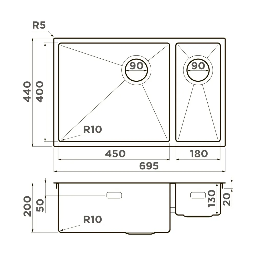 Отличительной особенностью этой модели является выпуск, размещенный сбоку от мойки. Такой дизайн позволит освободить место под мойкой для эргономичного размещения системы хранения, фильтра, измельчителя и других элементов.