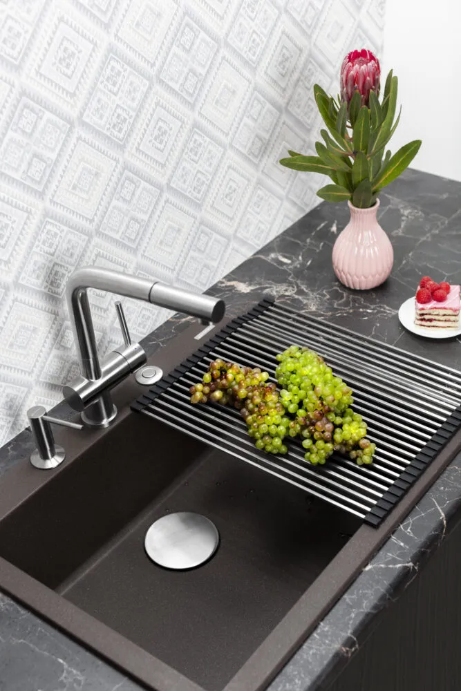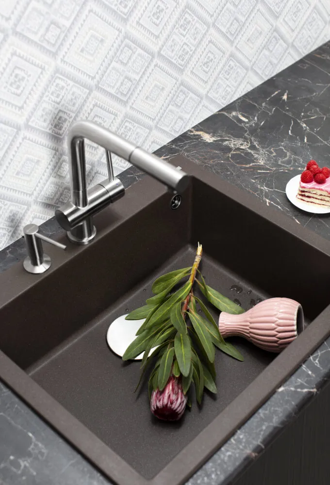Мойки из Tetogranit устойчивы к механическим повреждениям. Кварцевый песок в составе мойки имеет кристаллическую структуру, гарантируя неизменность внешнего вида мойки и ее безопасность. За счет плотной структуры материала мойки имеют гладкую и ровную поверхность, с которой легко убираются загрязнения при помощи обычной влажной губки.