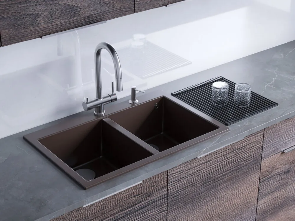Мойки из Tetogranit устойчивы к механическим повреждениям. Кварцевый песок в составе мойки имеет кристаллическую структуру, гарантируя неизменность внешнего вида мойки и ее безопасность. За счет плотной структуры материала мойки имеют гладкую и ровную поверхность, с которой легко убираются загрязнения при помощи обычной влажной губки.