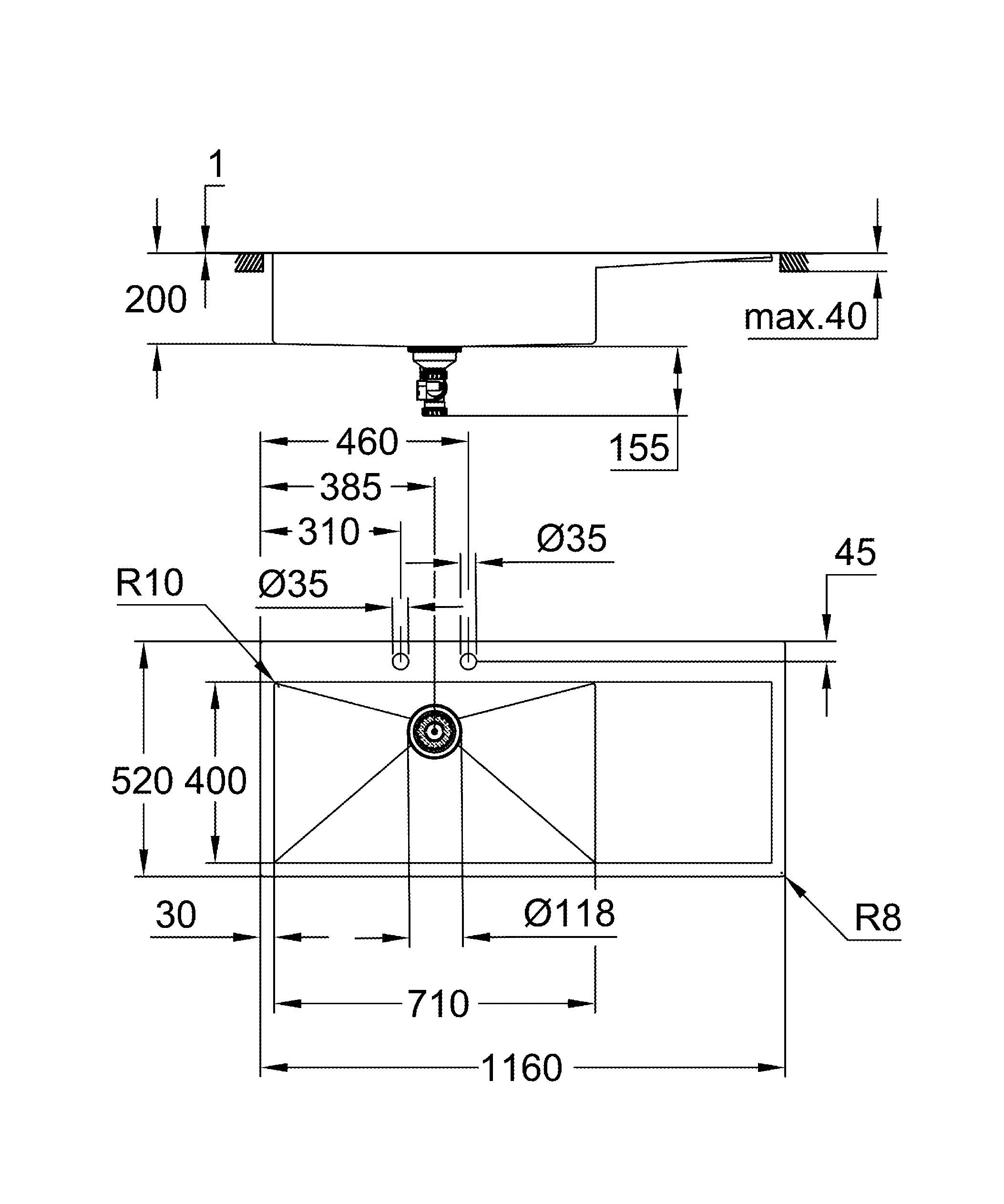 Опция: Эта мойка может быть оснащена клапаном-автоматом с нажимным механизмом (кнопкой) 40986SD0, приобретается отдельно.