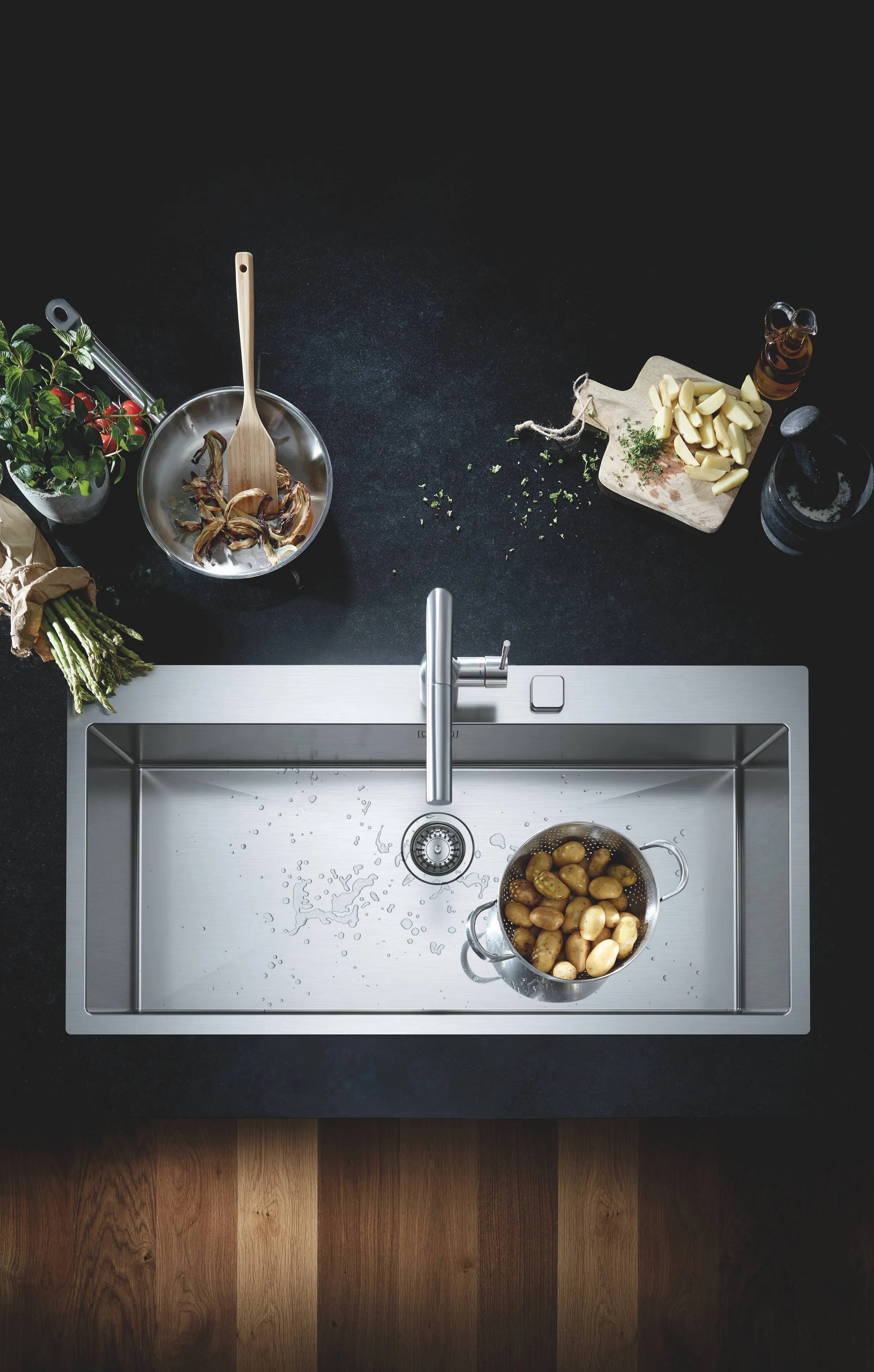 Опция: Эта мойка может быть оснащена клапаном-автоматом с нажимным механизмом (кнопкой) 40986SD0, приобретается отдельно.