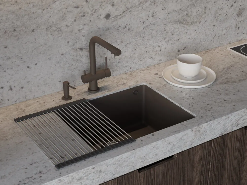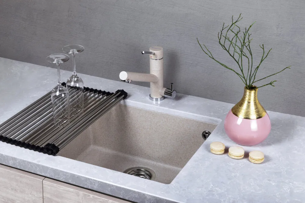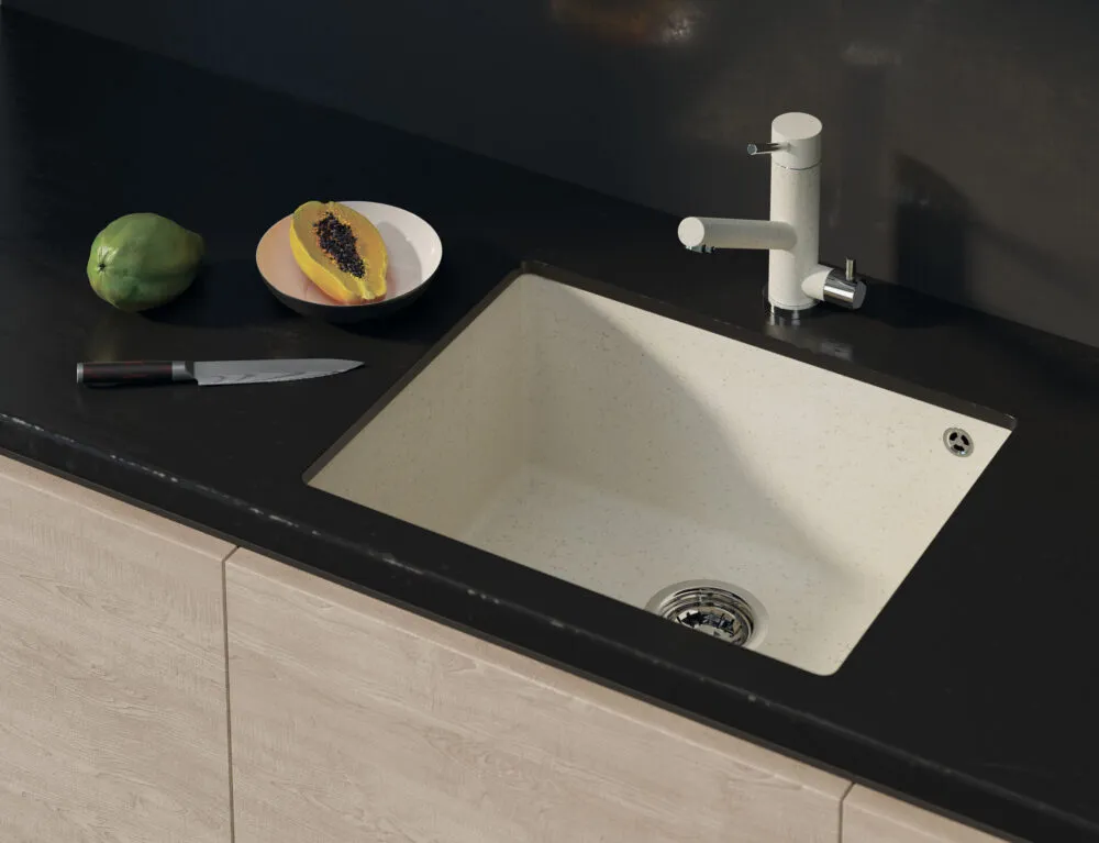 Мойки из Tetogranit устойчивы к механическим повреждениям. Кварцевый песок в составе мойки имеет кристаллическую структуру, гарантируя неизменность внешнего вида мойки и ее безопасность. За счет плотной структуры материала мойки имеют гладкую и ровную поверхность, с которой легко убираются загрязнения при помощи обычной влажной губки.