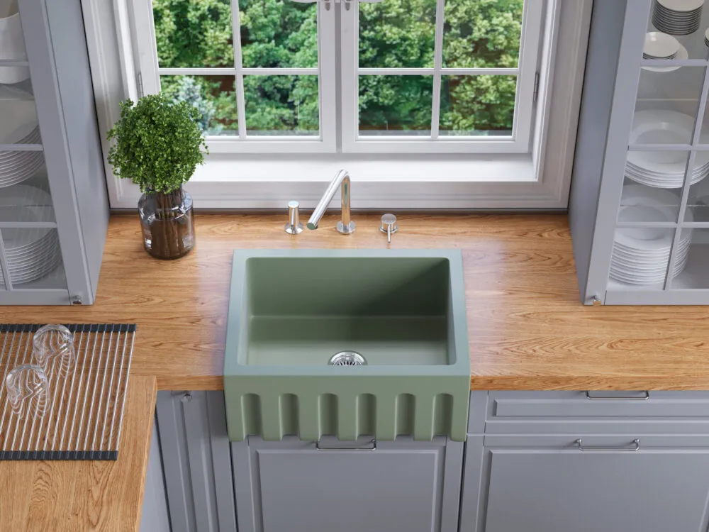 NATCERAMIC (сокращенно от natural ceramics) – материал из смеси глин, минералов и красящего пигмента. Компоненты обжигаются в пресс-форме в несколько этапов и затвердевают до камнеподобного состояния. Так мойка обретает цвет и форму, становится прочной и термоустойчивой. В завершение изделие покрывают специальной глазурью, которая выполняет защитную и декоративную функции.