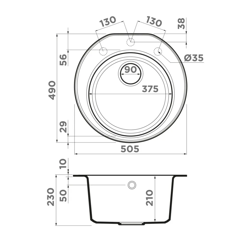 Перелив Omoikiri OV-1-R GB графит 4998041