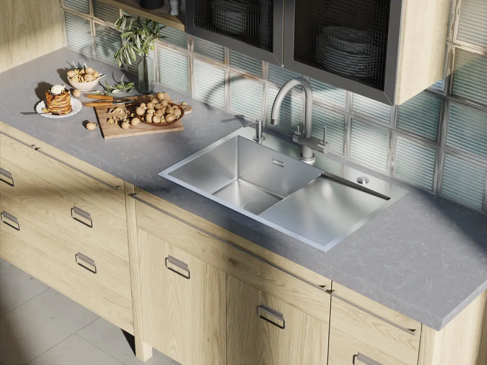 Кухонные мойки OMOIKIRI изготовлены из высококачественной хромоникелевой нержавеющей стали SUS304. Она содержит 18% хрома и 8% никеля, что обеспечивает ее максимальную защиту от коррозии. Самый важный показатель у мойки из нержавеющей стали – толщина стали, ведь чем она толще, тем более твердой, надежной и долговечной будет мойка. Для качественной мойки лучше выбирать толщину выше 0,6 мм. Мойки бренда OMOIKIRI имеют толщину от 0,7 до 1,2 мм.