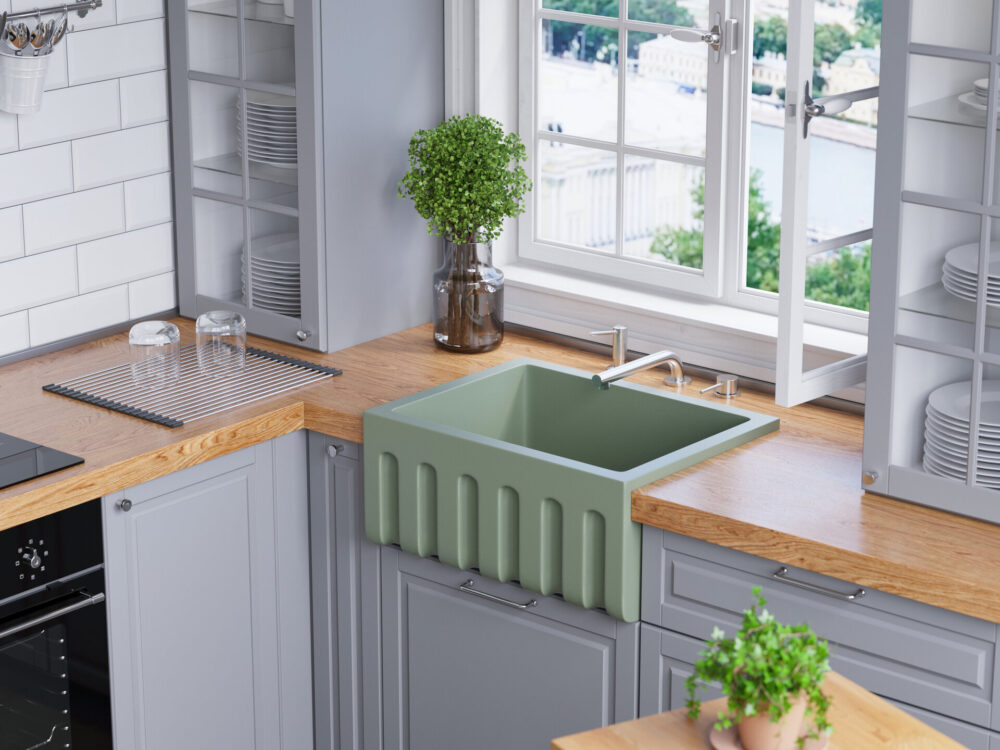 NATCERAMIC (сокращенно от natural ceramics) – материал из смеси глин, минералов и красящего пигмента. Компоненты обжигаются в пресс-форме в несколько этапов и затвердевают до камнеподобного состояния. Так мойка обретает цвет и форму, становится прочной и термоустойчивой. В завершение изделие покрывают специальной глазурью, которая выполняет защитную и декоративную функции.