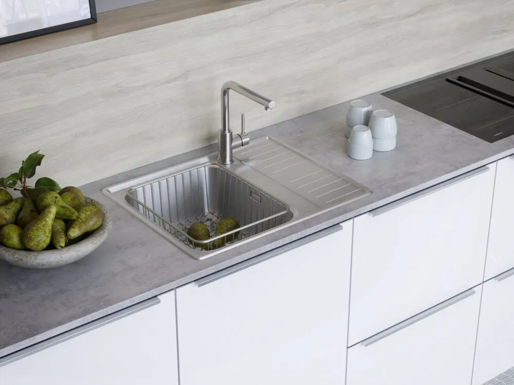 Кухонные мойки OMOIKIRI изготовлены из высококачественной хромоникелевой нержавеющей стали SUS304. Она содержит 18% хрома и 8% никеля, что обеспечивает ее максимальную защиту от коррозии. Самый важный показатель у мойки из нержавеющей стали – толщина стали, ведь чем она толще, тем более твердой, надежной и долговечной будет мойка. Для качественной мойки лучше выбирать толщину выше 0,6 мм. Мойки бренда OMOIKIRI имеют толщину от 0,7 до 1,2 мм.