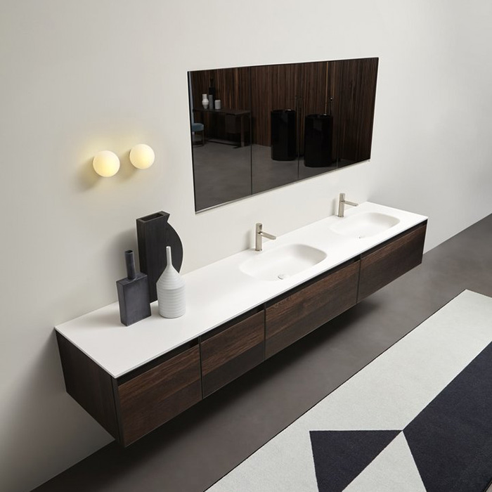 Комплект мебели Antonio Lupi Atelier с тумбами под раковину, 2 раковинами NUVOLA, зеркальным шкафом MANTRA, пеналом ATELIER, светильником BOLLA1, 90, Rovere thermo А0002452978
