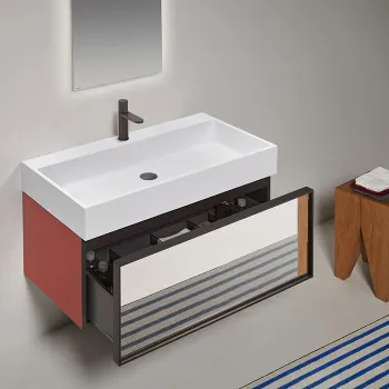 Комплект мебели Antonio Lupi Gesto 90х50хh37.5, с раковиной, с 1 ящиком с зеркальным фасадом, Terracotta goffrato/vetro argentato bronzo А0002424236