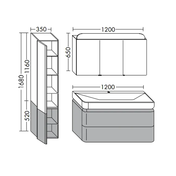 Burgbad B.ME Комплект мебели 120х55х68cм., подвесной, 2 ящика, раковина белая матовая, без отв., 2 шкафчика, цвет: Sand Matt SGUD120LF5982