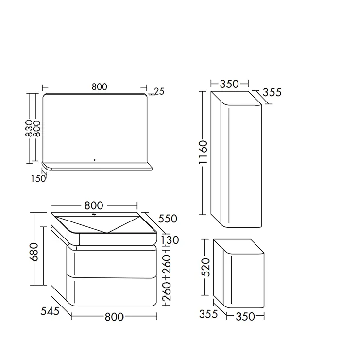 Burgbad B.ME Комплект мебели 80х55х68cм., подвесной, 2 ящика, c раковиной, с 1 отв., 2 шкафа, цвет: белый матовый APHE035F5981