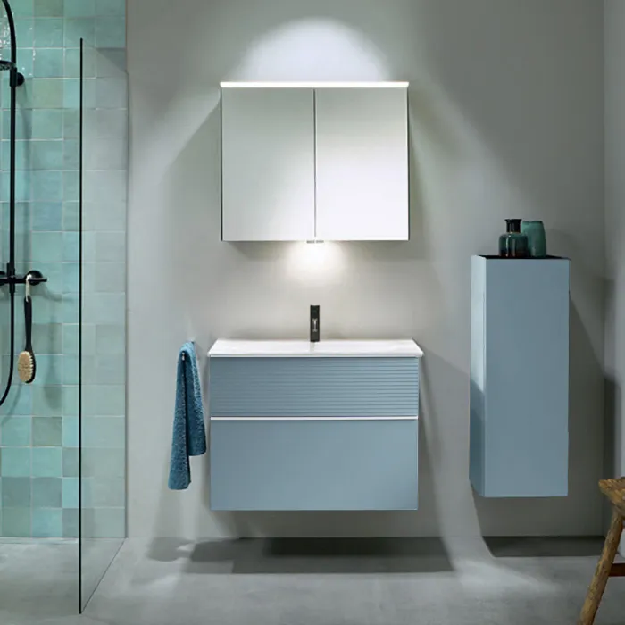 Burgbad Fiumo Комплект подвесной мебели 82х49х61см, с раковиной на 1 отв., ручки белые матовые, цвет: Eisblau Softmatt SFXN082F3957FOT55G0223C0001*1