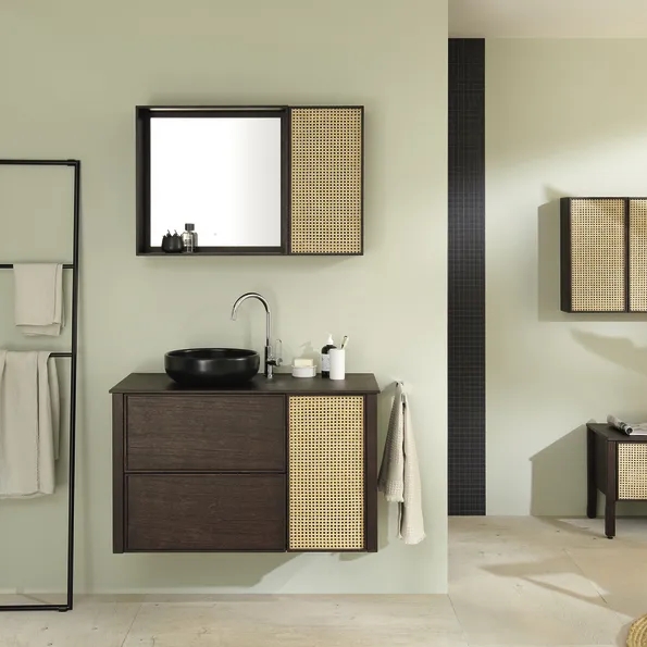 Burgbad MAX Комплект мебели 100х49х72см, подвесной, с раковиной, с зеркалом, с 2 ящиками, цвет: Dark chocolate oak SGJX100L C0038 F5350 G01 G0236