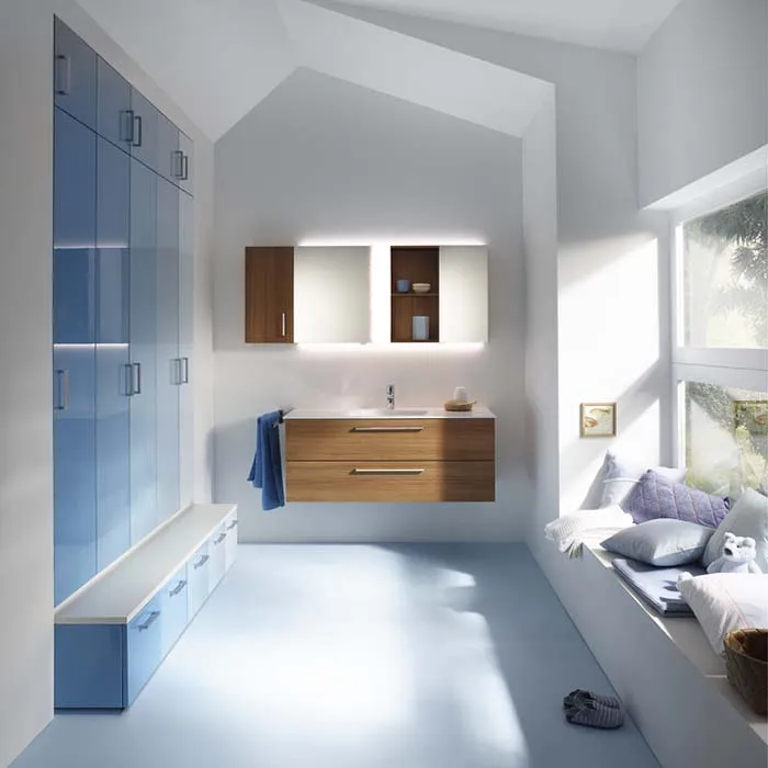 Burgbad Sys30 Комплект мебели №1, тумба с раковиной 120х48х48см., 2 ящика, ручки хром, подвесным шкаф и зеркальным шкафом, цвет: Tectona Dekor Zimt MWGI122 C0001
