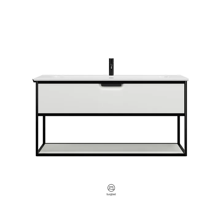 Burgbad Vry Комплект мебели 1230х496х600 мм, подвесной, 1 ящик, 1 полка, раков белая глянц с 1 отв для смес, ручка G0253, цвет белый матовый SGUJ123F6019GO253C0001*1