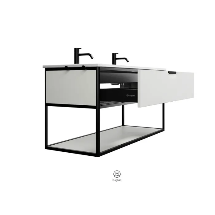Burgbad Vry Комплект мебели 1230х496х600 мм, подвесной, 1 ящик, 1 полка, раков белая глянц с 2 отв д