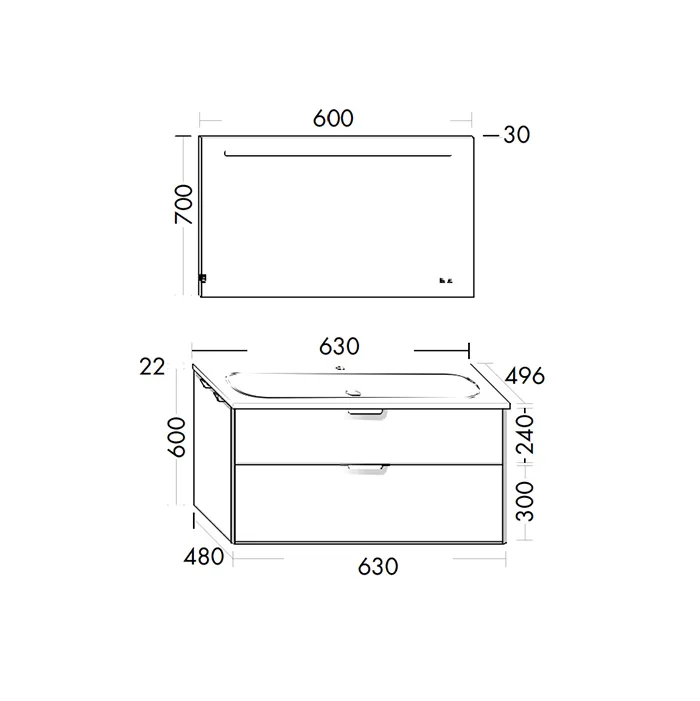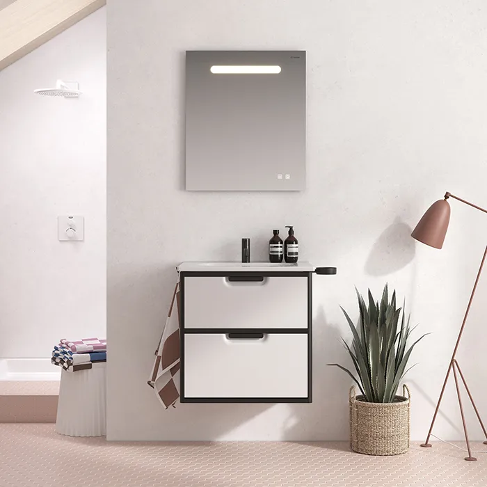 Burgbad Vry Комплект мебели 63х49.6х62.2cм., подвесной, 2 ящика, c раковиной, с 1 отв., ручка черная матовая, цвет: белый матовый SGUX063 F6019 C0001