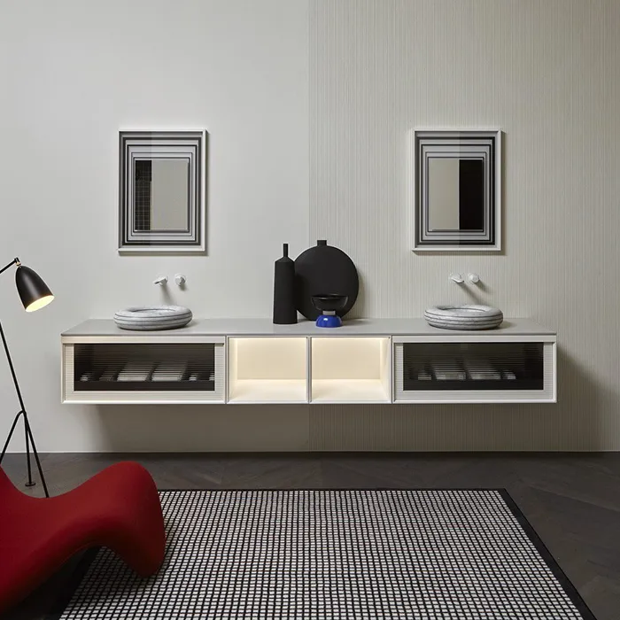 Комплект мебели Antonio Lupi Bemade с тумбами и базой под раковину, раковиной Gessati, зеркалом, 90, белый goffratto А0002451769