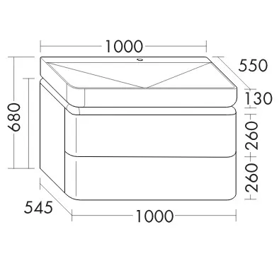 Комплект мебели Burgbad B.ME 1000х550х680 мм., подвесной, 2 ящ, раковина белая мат. с 1отв. для смес. , открывание нажатием G0126, цвет белый матовый