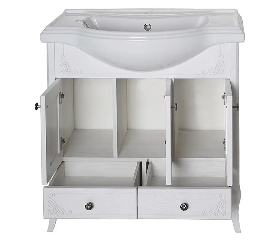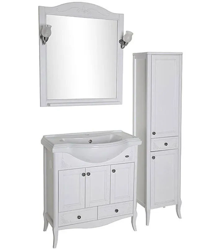 Комплект для ванной комнаты «Салерно 80» — это воплощение стиля, классических традиций и итальянского новаторства. Зеркало с аристократической светодиодной подсветкой дополнено удобной аккуратной полочкой. Дверцы и выдвижные ящики тумбы снабжены доводчиками, которые блокируют хлопки и плавно закрывают двери. Сама мебель выполнена из массива натурального ясеня в цвете антикварного ореха. Она экологична, безопасна и надежна. Способна служить долгие годы даже в условиях повышенной влажности от воды и образующихся паров.