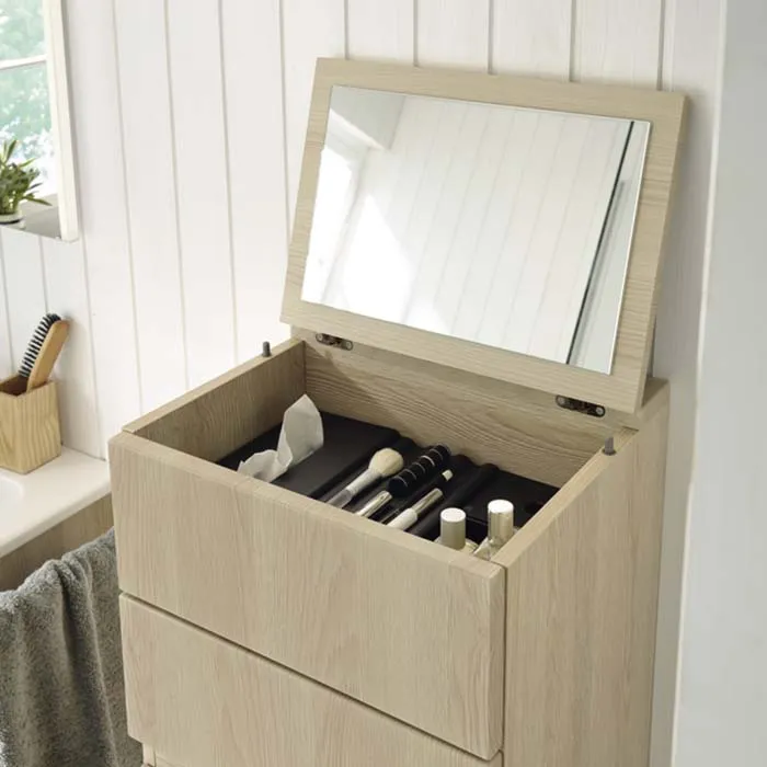 Burgbad Bel Шкаф 40х35х98см., подвесной, створка с зеркалом, открывающаяся наверх, 1 ящик, бельевая корзина, цвет: Frassino Dekor Cappuccino UHHC040 F3160