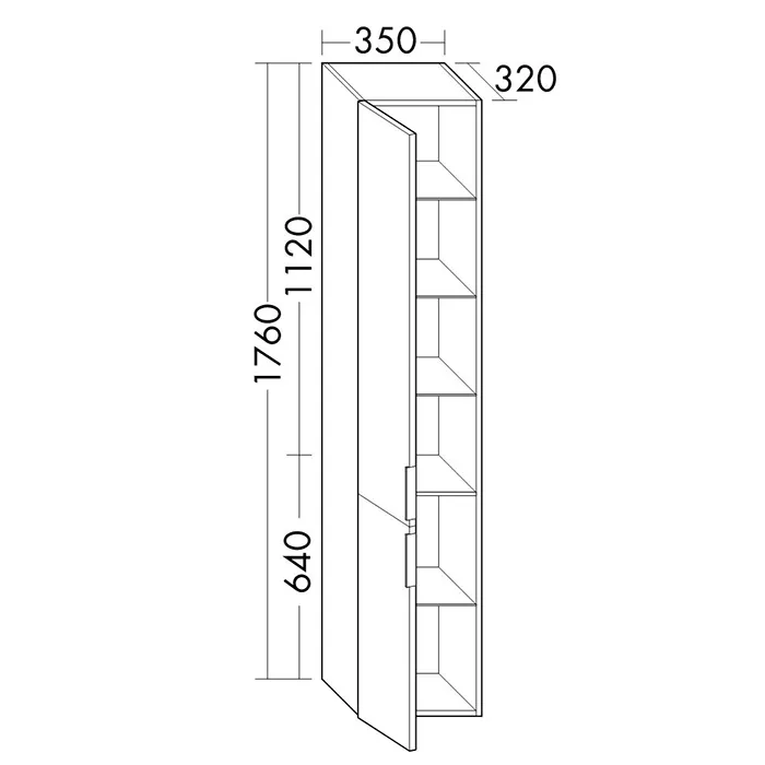 Burgbad Eqio Шкаф высокий 32х35х176см, две двери, петли слева L, 4 стекл полки,1 несъемная полка, подвесной, цвет: белый глянец HSFB035LF2009