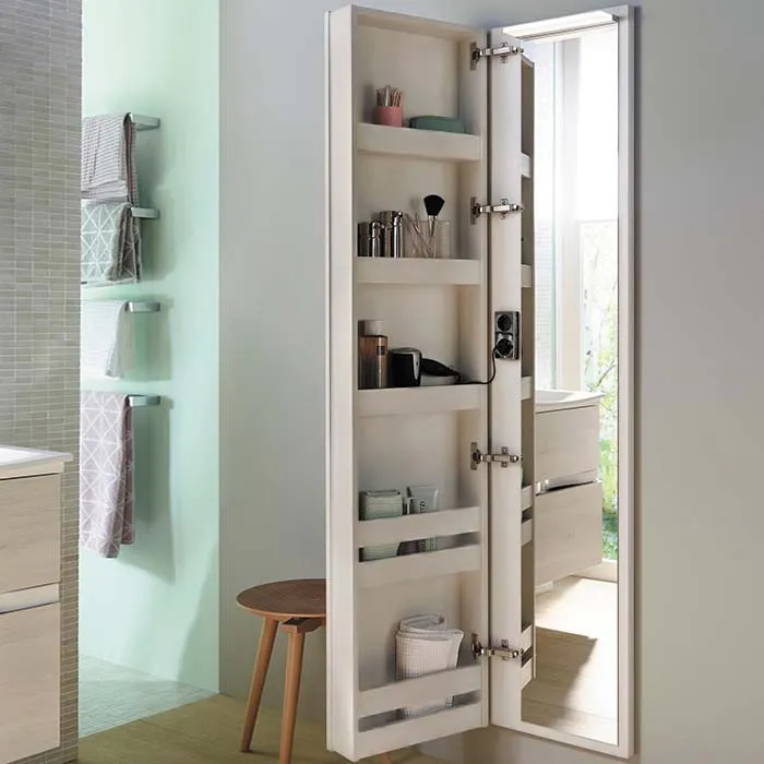 Burgbad Sys30 Шкаф 40х15х176см., подвесной, 5 полок ,1 зеркало, Sx, подсветка, ручки хром, цвет: бел