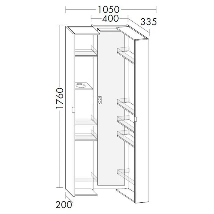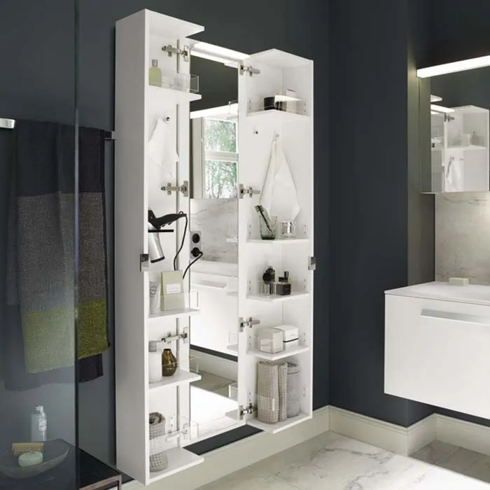 Burgbad Sys30 Шкаф 40х33.5х176см, подвесной, 2 створки с полками и держ фена, зеркало и двойн розетк