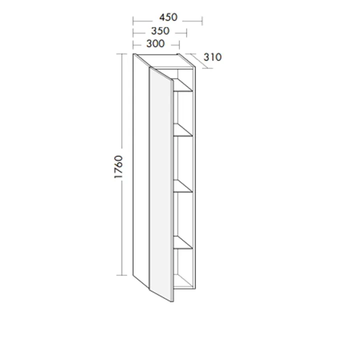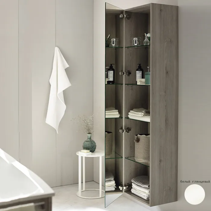 Burgbad Sys30 Шкаф 45х31х176cм, подвесной, 1 зеркальная дверь, 4 стеклянные полки, левый, цвет: белый глянцевый HSGY045L461