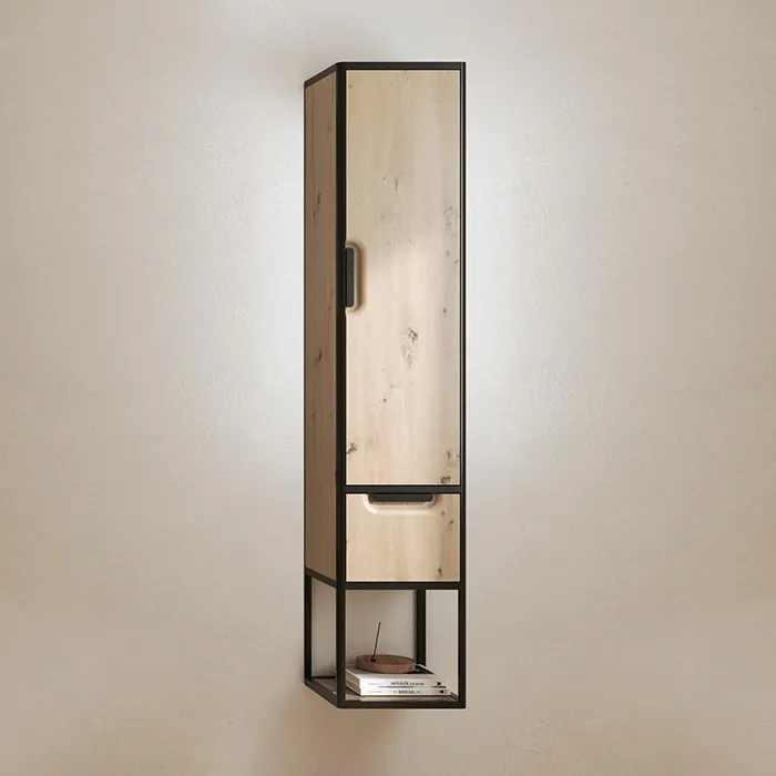 Burgbad VRY Шкаф 36х34х174см, подвесной, правый, 1 дверь, 1 ящик, 1 полка, ручки черные матовые, цвет Eiche Dekor Urban SGWN035R F6020
