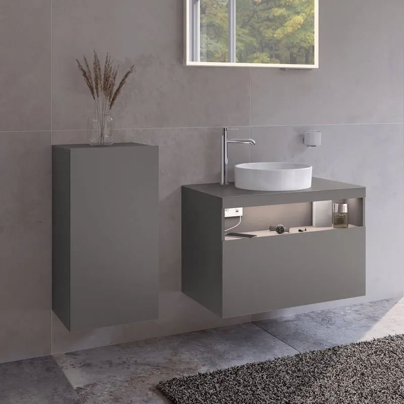 Эти покрытия обладают не только эстетическим эффектом, но и практическими преимуществами: устойчивость к пятнам и отпечаткам, лёгкость ухода, защита от влаги, долговечность. Это делает мебель Keuco привлекательным выбором даже для комнат с повышенной влажностью.