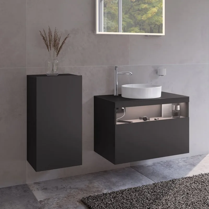 Эти покрытия обладают не только эстетическим эффектом, но и практическими преимуществами: устойчивость к пятнам и отпечаткам, лёгкость ухода, защита от влаги, долговечность. Это делает мебель Keuco привлекательным выбором даже для комнат с повышенной влажностью.