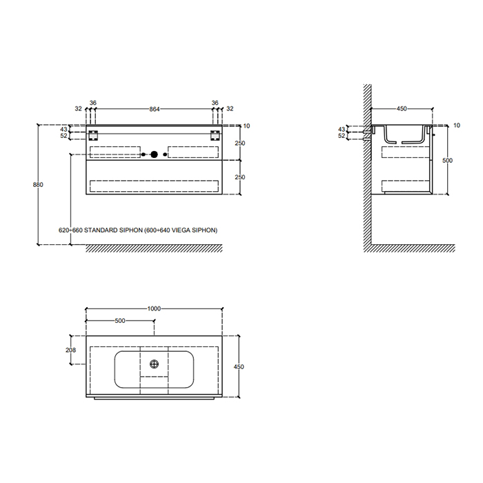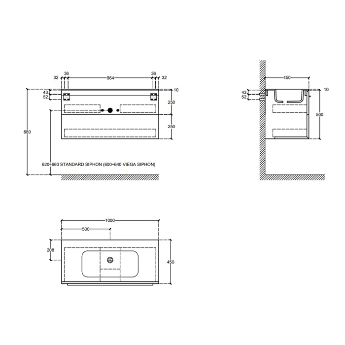 Композиция из тумбы Falper 7.0 R0510000000BQ 1000х450х500 на 2 ящика и раковины CERAMILUX P7C10001000OP с 1 отверстием под смеситель, V4B