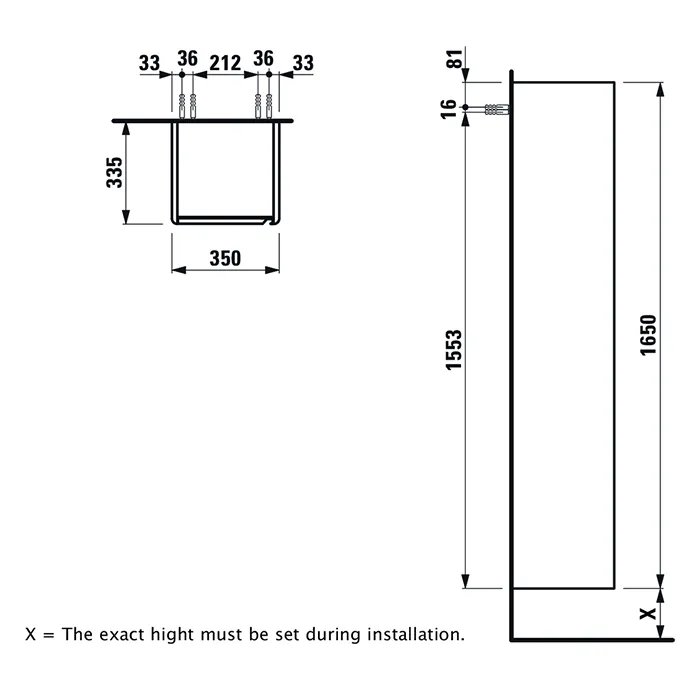 Laufen Base FOR INO высокий шкаф 350x330x1650 мм, 1 дверца, ручки из анодированного алюминия, петли слева, 1 фиксированная полка и 4 стеклянных, светл